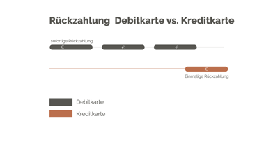 Visuelle Darstellung - Debit (sofort) vs. Kreditkarte (Monatsende)